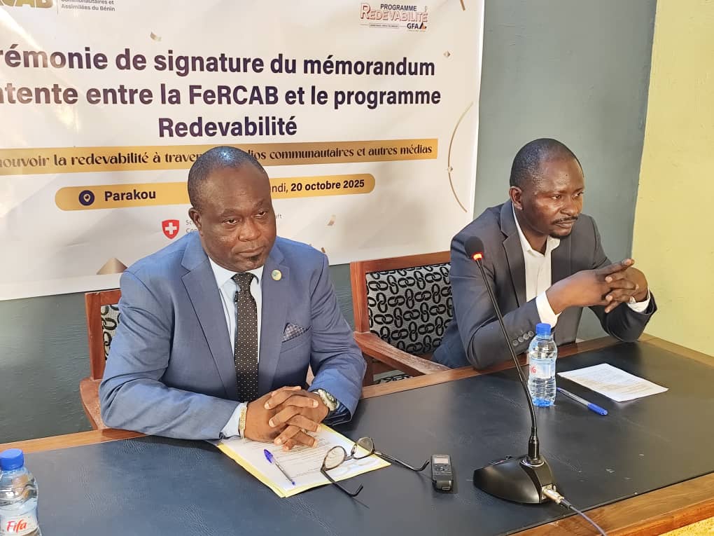 Signature d'un mémorandum d'entente entre la Fédération des Radios Communautaires et Assimilées du Bénin et le Programme Redevabilité Phase3.